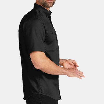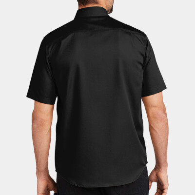 Clean and simple, this button-down work shirt can do it all. A triple-stitched, wrinkle-free design maintains a professional appearance, day in and day out.