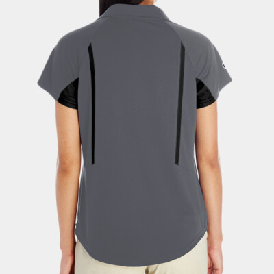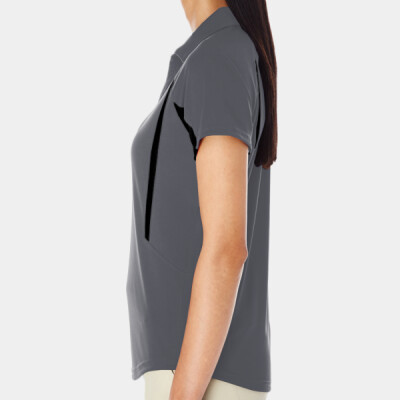 * Dry-Excel(tm) 4.1 ounce 100% polyester wicking horizontal textured stripe knit with high mechanical stretch and snag resistant technology * Wicks moisture * Ladies' fit * Tag-free label * Self-fabric collar * Contrast color inserts * Raglan sleeves * Contoured bottom