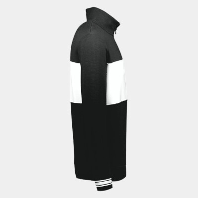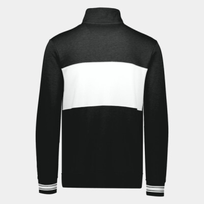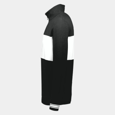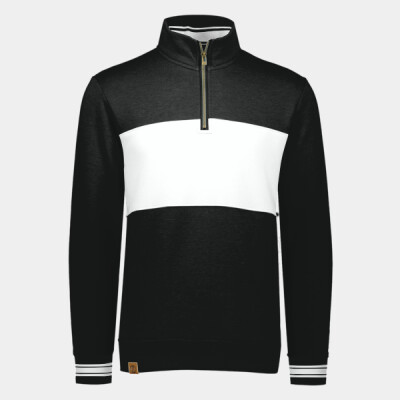 * 7.6 ounce 55% polyester/41% cotton/4% rayon, super soft fleece * Woven label * Exterior faux leather logo loop label * Quarter zip pullover style with antique brass zipper and zipper pull * Set-in sleeves * Side seam pockets * Spandex blend rib-knit inner collar & cuffs and bottom