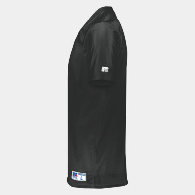 * 100% nylon (colors), 100% polyester tricot mesh (white) * 73 cloth yoke for added durability in contact area * Outside locker label * V-neck collar * Side vents * Not to be worn with pads * Set-in sleeves